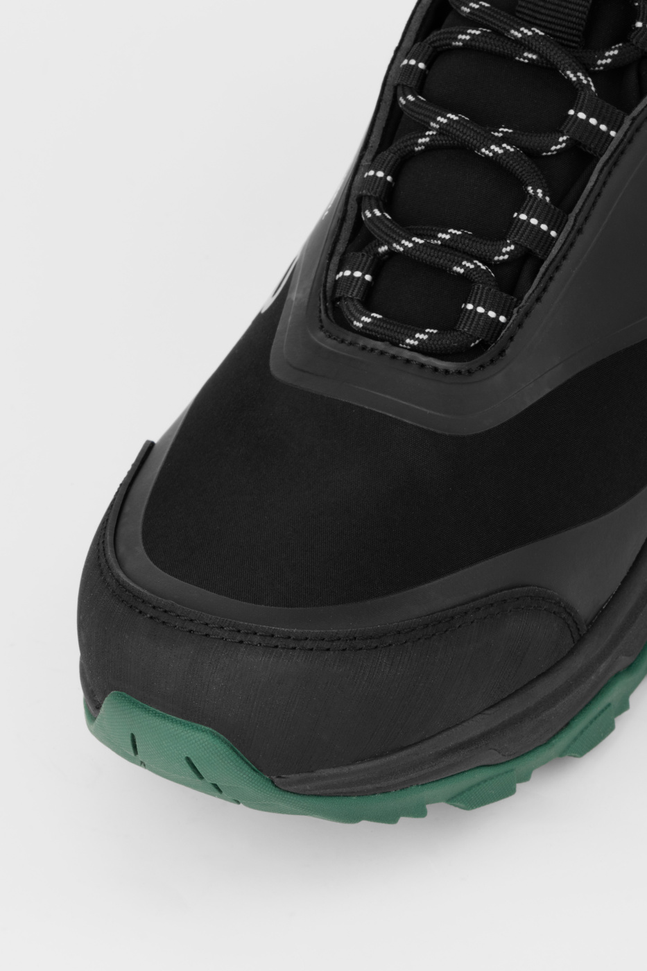 Шнурки водоталкивающие, содержат  мультифиламентную нить, не растягиваются, что гарантирует долговечность. Комбинированная подошва с эффектом антискольжения и гашения вибрации обеспечивает уверенное сцепление с различными поверхностями, а укрепленная пяточная часть и носок защищают от ударов.